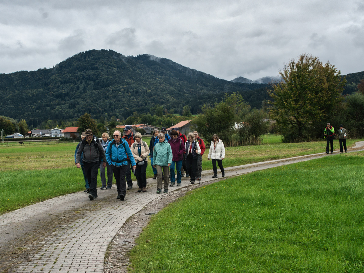 Der weitere Wanderweg führte uns durch das Wiesenbrütergebiet Loisach-Kochelsee-Moore. Die Moorlandschaft zwischen Loisach und Kochelsee entstand in der Würmeiszeit vor mehr als 15.000 Jahren. Seit über 1.000 Jahren werden diese Gebiete landwirtschaftlich genützt. Es entstanden die blumenreichen Streuwiesen im Bereich des Niedermoores. Gleichzeitig sind die ausgedehnten Feuchtgebiete Lebensraum für eine Vielzahl von Pflanzen- und Tierarten, die vom Aussterben bedroht sind. Mehr als 200 Vogelarten kommen als Gast- und Brutvögel in das Moorgebiet. Entlang der Loisach erreichten wir den Kochelsee. Der Weg führte uns durch Kochel zu unserem Hotel zurück. Am Abend fuhren wir hinauf nach Walchensee in die Gasthof Edeltraut zum Abendessen und zur lustigen Aufführung der Komödie „Mit Schwund muaßt rechnen“ von der Theatergruppe Walchensee.