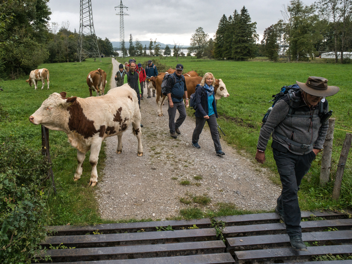 Nach dem Frühstück brachte uns der Bus hinauf nach Urfeld am Walchensee. Unsere Wanderung führte uns entlang am südöstlichen Ufer des Walchensee vorbei am Hofladen Sachenbach leicht bergauf durch die Wald-/ Wiesenlandschaft um den Fischberg nach Niedernach. Auf dem Uferweg ging es nach einer Einkehr im Kiosk-/Hofladen Sachenbach nach Urfeld und mit dem Bus zurück zum Hotel.
