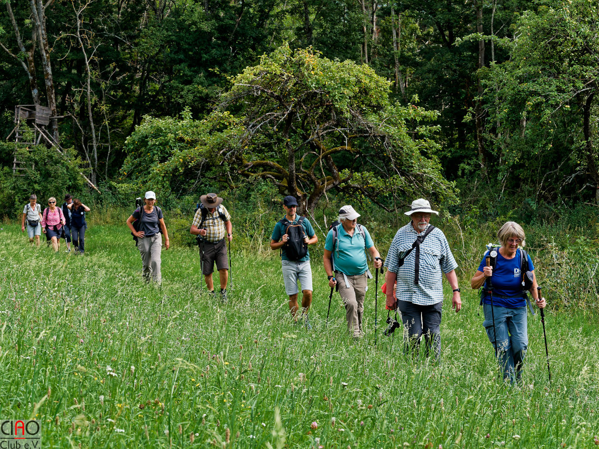 14 CIAO'ler und 1 Gast trafen sich am 17. August bei sommerlicher Morgenkälte und leichtem Wind um 09:30 Uhr am Gairenbuckel unterhalb des Wasserberges. Die etwas anspruchsvolle, bevorstehende Wanderung versprach schöne Aussichten und eine blühende Flora in dem Naturschutzgebiet des Haarberges.