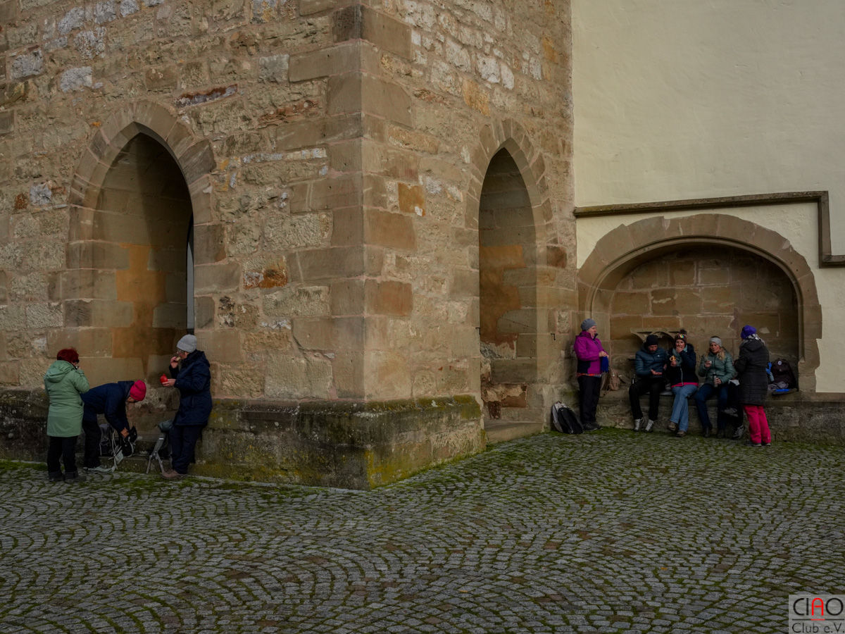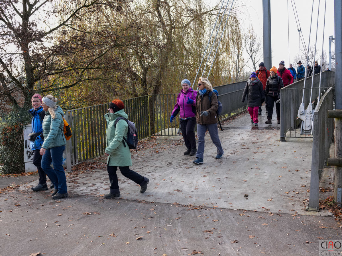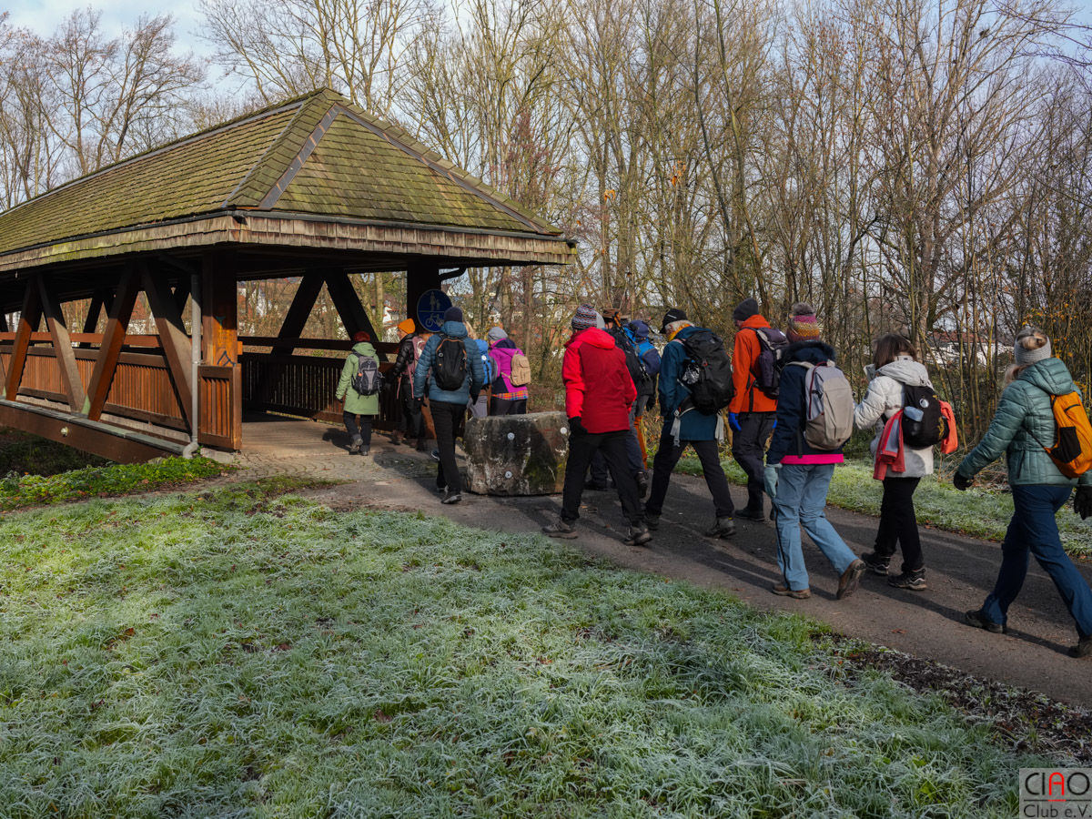 Letzen Sonntag wanderten wir von Murr aus über Benningen-Marbach-Steinheim zurück nach Murr. Es war eisig kalt bei minus Grade, aber trocken. So konnten wir pünktlich um 11.30 Uhr los laufen. Wir nahmen der Radweg entlang der Murr und nach ca. 1 Km überquerten wir eine sehr malerische Holzbrücke. Nach einem leichten Anstieg führte uns der Weg raus aus Murr, Richtung Benningen. Auf halber Höhe wanderten wir dann in den Weinbergen zum Kreisverkehr nach Benningen, liefen über die Neckarbrücke und im Tal entlang nach Marbach. Nach ca. 1,5 KM überquerten wir die Hängebrücke über den Neckar und an der großen Kreuzung liefen wir der Fußweg entlang der Stadtmauer, hoch in die Marbacher Altstadt.
