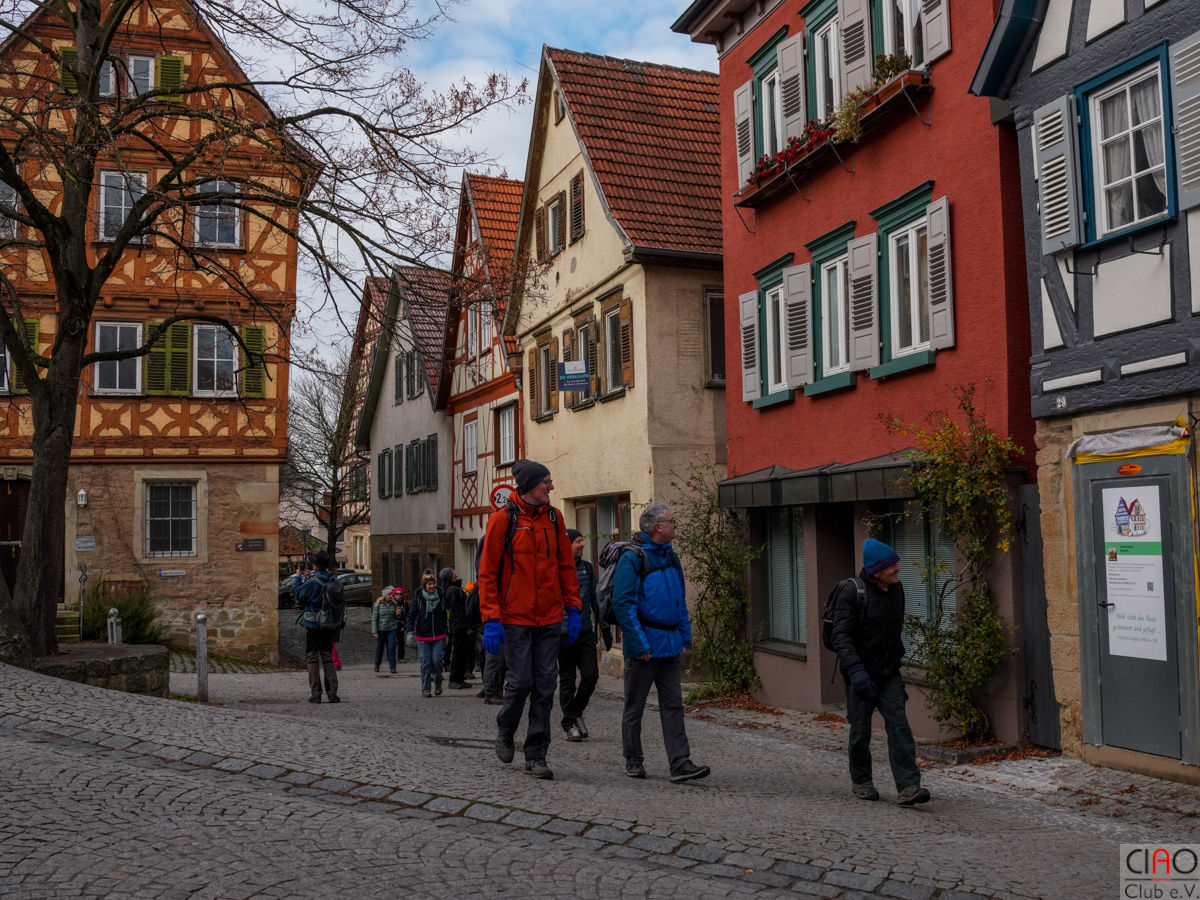 Durch die malerischen „Holdergassen“ und am Schiller Geburtshaus vorbei wanderten wir zur Alexanderkirche. Auf dem Kirchplatz machten wir bei wunderschöner Aussicht unsere Mittagspause. Wir liefen dann gestärkt am ehemaligen Krankenhaus vorbei zum „Galgen“. Eine sehr beliebte Freizeitanlage mit einer tollen Aussicht auf das Murrtal. Nach kurzer Pause ging es dann durch die Weinberge Richtung Steinheim und durch das Industriegebiet zurück zu unserem Ausgangspunkt. Da es für das Lokal noch zu früh war, wanderten wir noch ne Runde um Murr herum. Gegen 16.00 Uhr waren wir dann im Lokal und konnten uns wieder aufwärmen. Bei einem leckeren Essen ließen wir dann den schönen, aber sehr frostigen Tag, ausklingen.